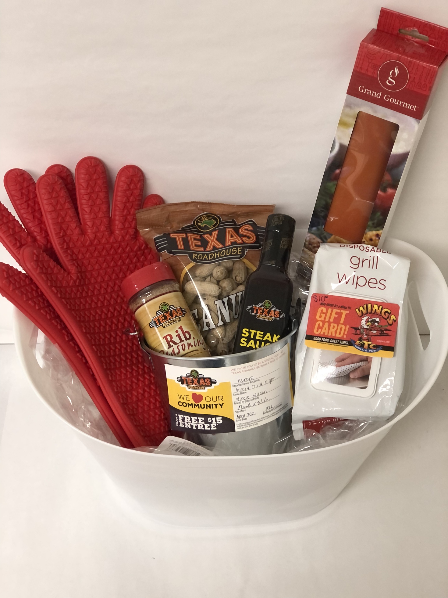 Grill Basket With 10 Wings Etc Gift Card 15 Texas Roadhouse Entree Gift Card Aurora S Trivia Tonight Silent Auction